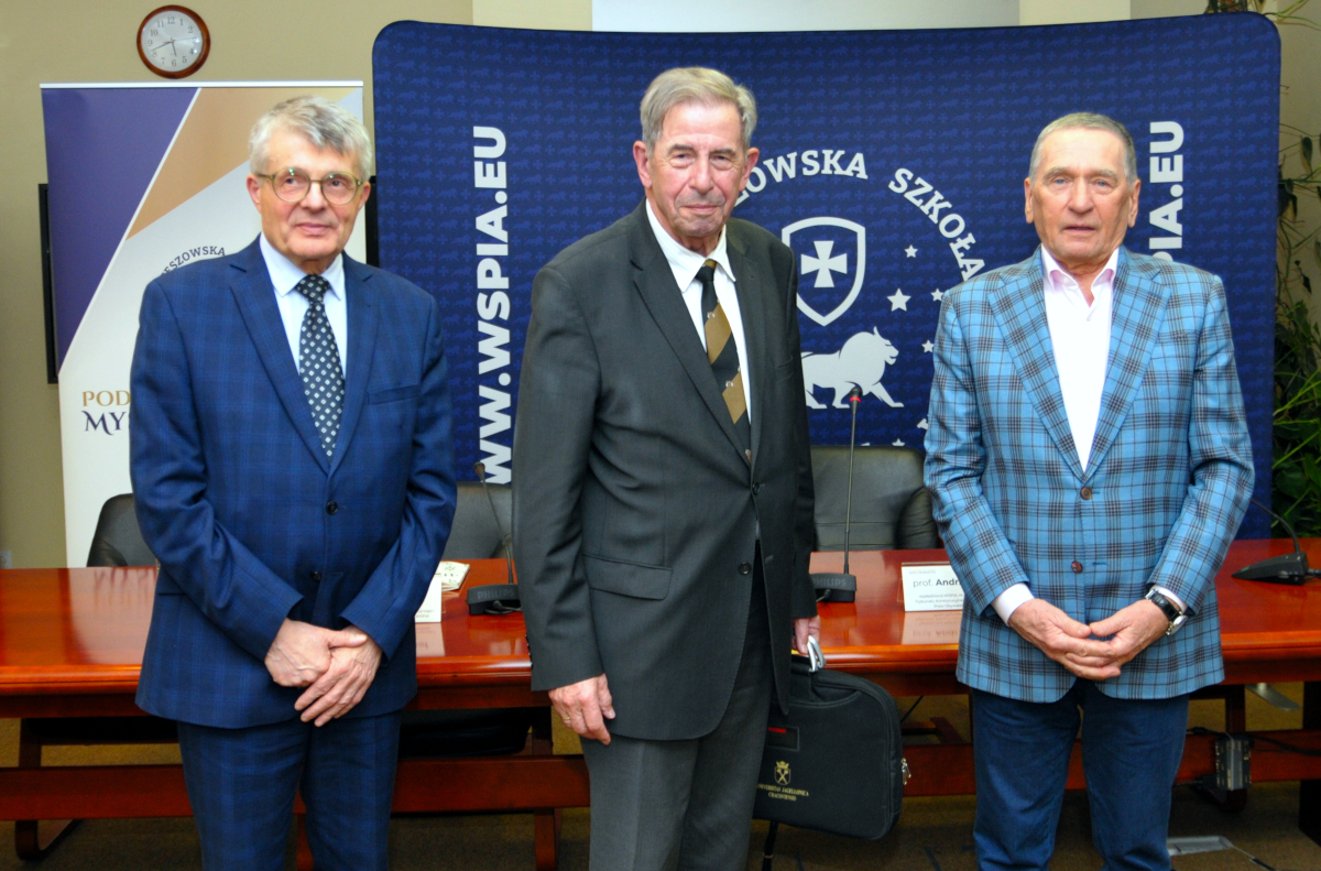 "Trybunał Konstytucyjny - teraźniejszość i przyszłość" tematem ostatniego w tym roku Podkarpackiego Forum Myśli Prawniczej. Gościem wydarzenia był prof. Andrzej Zoll, wykładowca WSPiA Rzeszowskiej Szkoły Wyższej, wybitny konstytucjonalista, sędzia, były Prezes Trybunału Konstytucyjnego i były rzecznik praw obywatelskich, który w swoim wystąpieniu przedstawił pogłębioną analizę funkcjonowania Trybunału - od momentu jego powstania w latach 80., przez okres transformacji ustrojowej, aż po aktualne wyzwania ustrojowe i prawne.