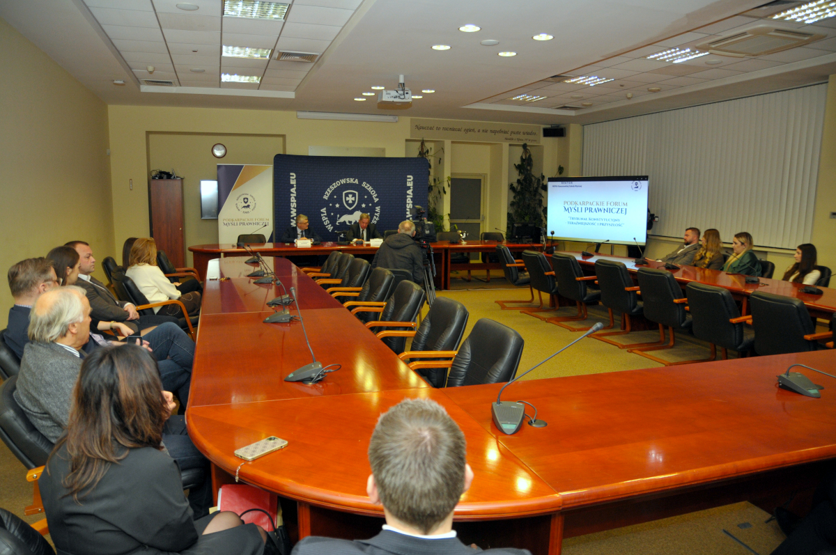 15 grudnia 2025 roku w WSPiA Rzeszowskiej Szkole Wyższej odbyło się kolejne spotkanie z cyklu Podkarpackiego Forum Myśli Prawniczej, tym razem poświęcone jednemu z kluczowych zagadnień współczesnego konstytucjonalizmu - kondycji i przyszłości Trybunału Konstytucyjnego w Polsce.